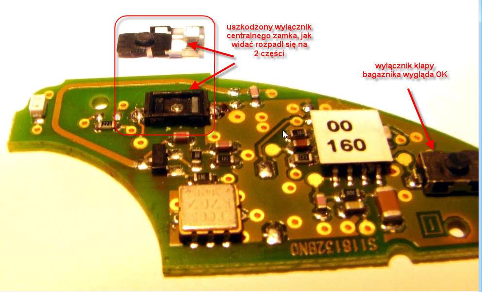 Ostatnio zabrałem się za kluczyk bo raz działał raz nie. Na forum widziałem również kilka postów, więc do rzeczy. Jeżeli komuś nie dziwna lutownica i nie trzęsą mu się ręce to da sobie rade. Koszt naprawy to koszt wyłączników, które nabyłem w sklepie elektronicznym. Pokazałem panu jak to wygląda i dobrał bardzo podobny.