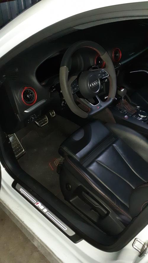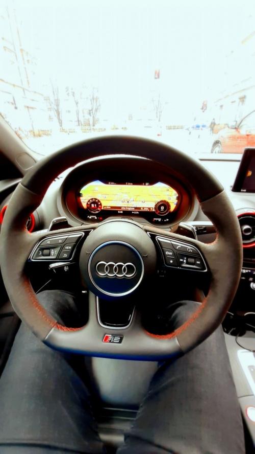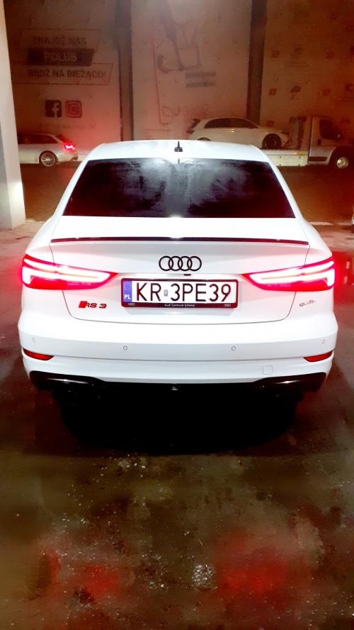 RS3 - petarda, widzę, że nawet fotelik dla dziecka się z tyłu zmieściłPozostając w tematyce Audi, postanowiłem rozpocząć nowy rok z przytupem i wypożyczyć coś mocniejszego dla fun'u. Wybór padł na Audi RS3 z 2020r. w budzie limousine. Wszechobecne zakazy, nakazy, kwarantanny itd. sprawiały, że nawet w ferie nie było co robić w tym nudnym jak pi*** mieście (cytując klasyka). W wielkim skrócie - samochód praktycznie nowy z salonu ok 33k km przebiegu, napęd quatrro, 400KM i 4,1 sek do 100km/h. Totalny przekot !!! Na dodatek wszystkiego przy spokojniejszej jeździe spalanie w granicach 9-10l/100km, a przy ostrych startach i mocnych przyśpieszaniach ok 13,5l/100km <wow> Muszę przyznać, że zrobił na mnie większe wrażenie niż Maserati Ghibli SQ4 (do zwykłego Q4 nie ma w ogóle podejścia). Już chyba wiem w co będę celował w przyszłości, tylko ta cena ... 330 000zł w tej specyfikacji, za miejski kompakt z budzie sedana