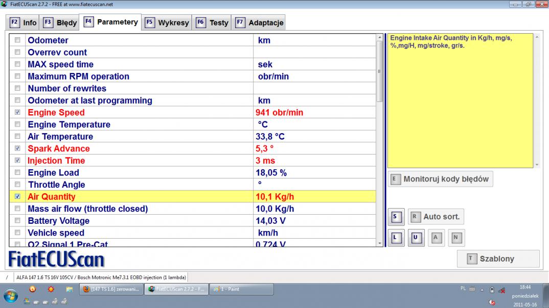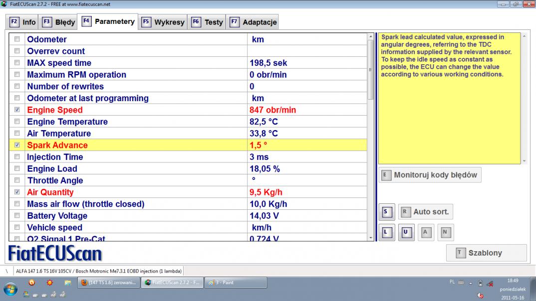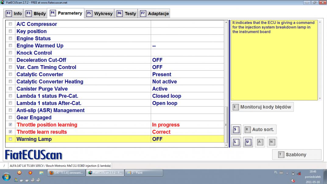 - po nagrzaniu ECU odczytuje sondy i reguluje mieszankę, potem zapala błedy.