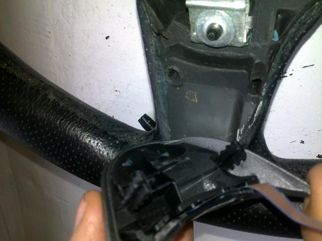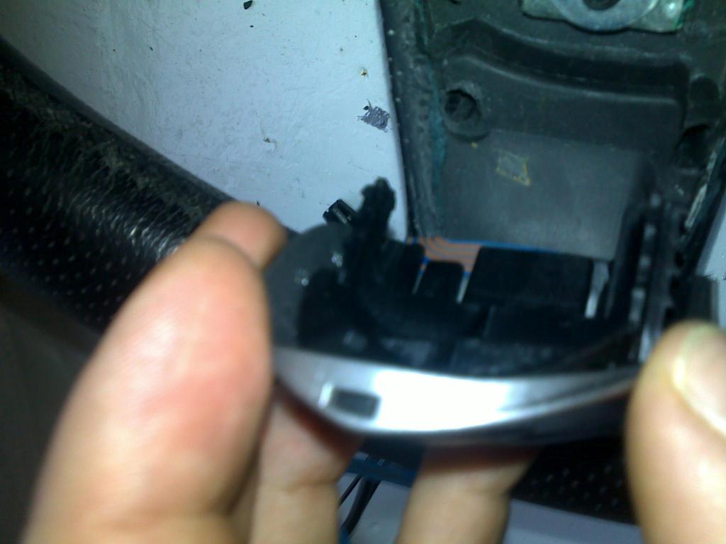 czyli ze zdjec wychodzi ze najpierw wyjmuje sie calosc z kolkami zakotwiczonymi w kierownicy a dopiero pozniej zaczepy od szarego plastikudzieki bo nie wiedzialem jak to ugryzc a nie chcialem czegos pourywac