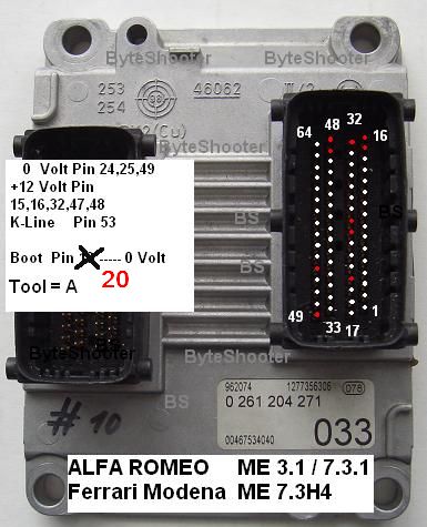 o jakim łaczeniu mówisz ?.. bubu321 podał ci jakim interfejsem łaczymy się z Ecu, airbagiem... Galletto łaczy się swoim specyficznym interfejsem, to nie jest żaden VAG KKL ani inny znany na rynku. Podaj jak się łączysz, czy też ECU na stole ?, jakie napięcie zasilania i do jakich pinów połączone. Pin boot wybierasz dopiero jak bedzie potrzeba wgrania immo-off, lub immo-total. Zwykle przy immo-off dla Me 7.3.1 zawsze jest podawany ten schemat połaczeń. Tak mi coś tutaj nie pasowało w 147 TS boot pin to pin =20.Kod:szybkie pytanie jakim kablem się łaczyć ??