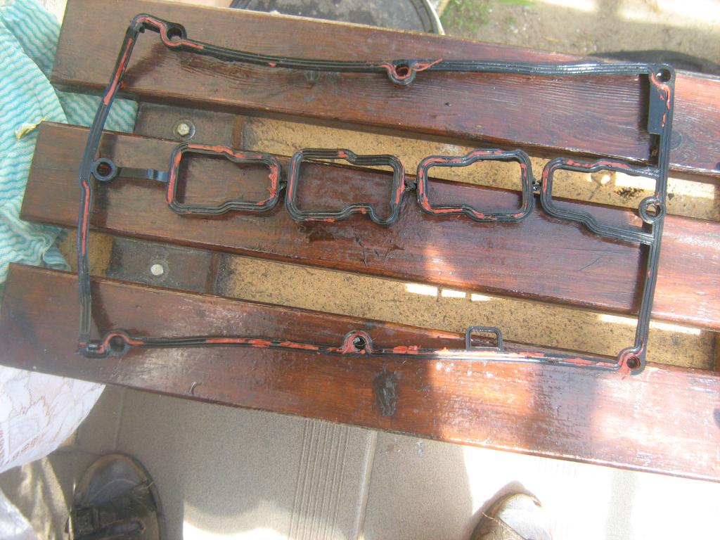 Ogólnie to silnik jest nasmarowany olejem również od dołu na jest go pełno , po zdjęciu pokrywy patrząc na uszczelkę trochę się zdziwiłem , uszczelka wygląda jakby nie dawno była wymieniana(jej stan nie różni się od tej co kupiłem tyle że jest przesiąknięta olejem) , a olej cieknie na potęgę. Z demontażem samej uszczelki nie było żadnych problemów zeszła bez problemu.