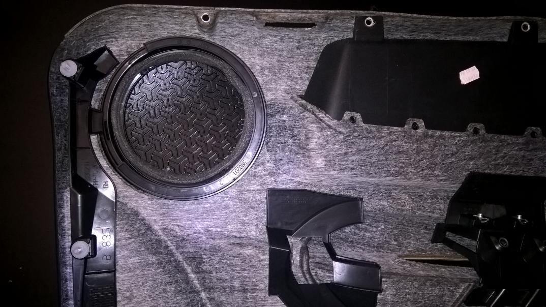 Wszystko blokuje kostka drzwi-karoseria. Za dużo roboty by ja wyjąć nawiercić otwór na przewód. Woofer mam podłączony do oryginalnej instalacji tuz przy radiu. 2 kanały z radia mam przylutowane do konwertera sygnału audio RCA. Z głośnikiem sopranowym było troche zabawy by moc spokojnie przeprowadzić kabel. Musiałem wyjąć cały schowek i plastiki wokół niego ale się udalo. Jutro wezmę się za lewa stronę. Woofer tylko wystarczy przylutować do oryginalnej wioski . I przeciągnąć sopran.