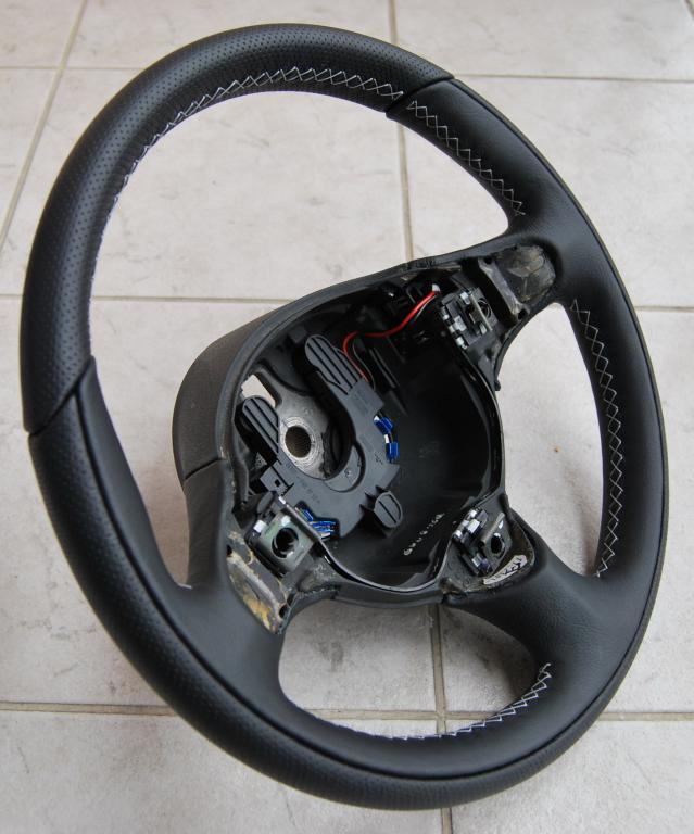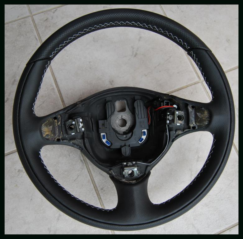 Zdjęcia kilku kierownic ostatnio obszytych i gałka do podnoszonego wstecznego (to do 156 przed FL dlatego nie jest czarna tylko grafitowa). Na niektórych zdjęciach widać 3 rodzaje czarnej skóry (i tak nie wszystkie dostępne) i porównanie starej, wytartej i błyszczącej skóry z taką samą nową. To dla tych, którzy twierdzą, że nowa jest inna niż stara... Trzeba być świadomym, że nie ma błyszczących skór motoryzacyjnych a z wiekiem skóra twardnieje, ciemniej i nabiera połysku od potu itd.