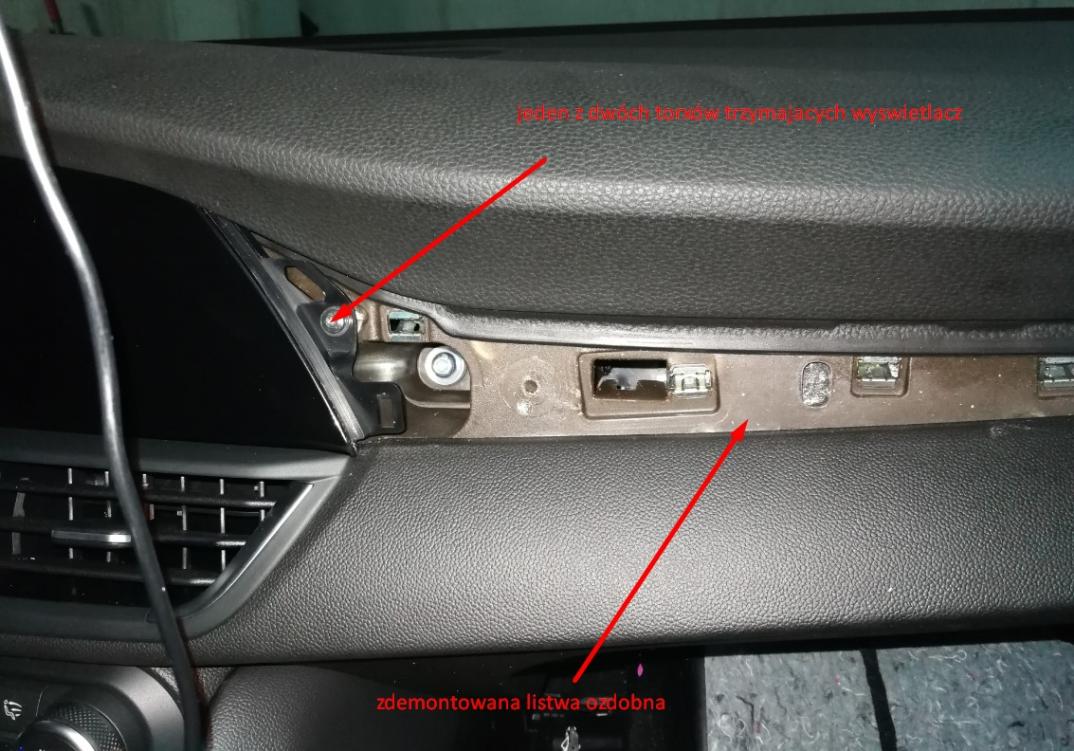 Nurkujemy w przestrzeń na nogi i odkręcamy 3 torxy, trzymające listwę. Podważamy osłonę prawego nawiewu.