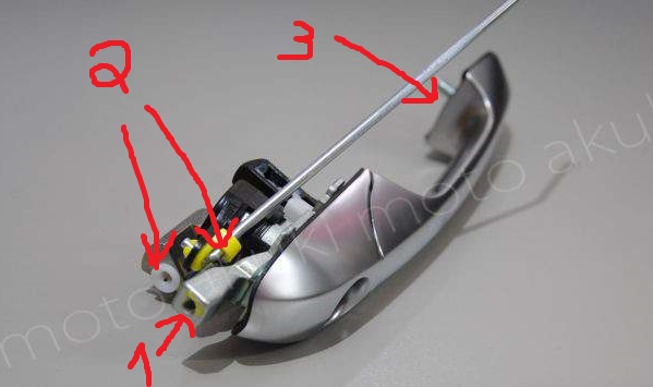 3 odkręcasz nakrętkę 10mm oznaczoną 3 na zdjęciu (to ona trzyma klamkę od strony zawiasiku)