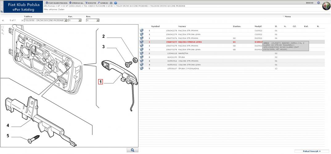 Na początku pękł sam zawiasik więc kupilem już ale czekałem na ładniejszą pogodę, żeby rozbierać boczek i wymieniać, a dzisiaj wyłamała się z drugiej strony, cienki plastik od klamki idący do środka. Więc co potrzebuje?