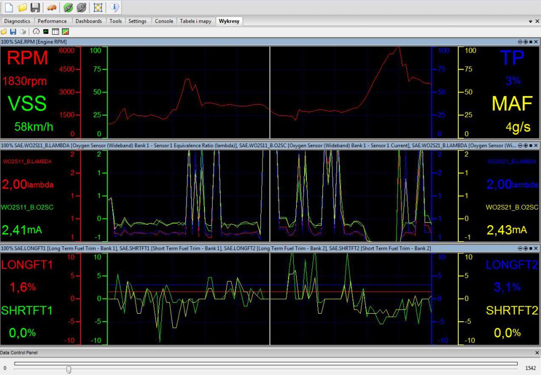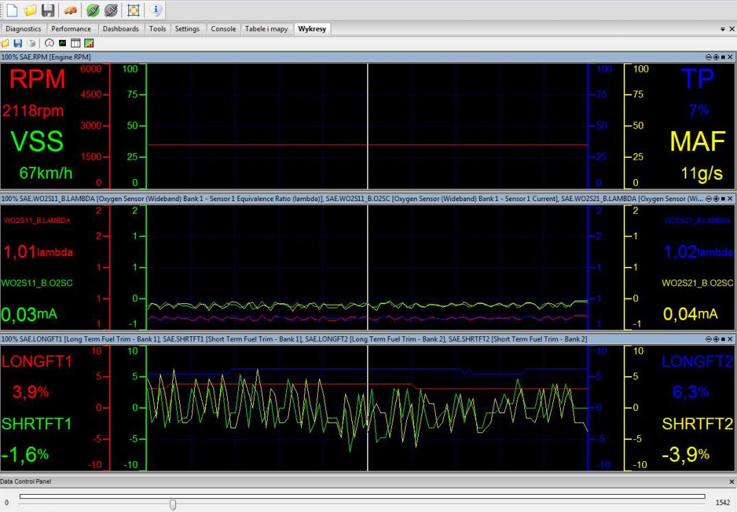 - dodatkowo program pokazuje parametr Lambda, czyli skład mieszanki paliwowo-powietrznej.