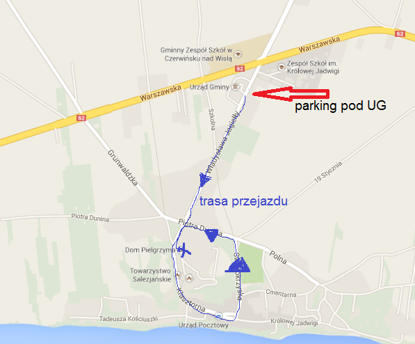 -zbieramy się wszyscy na parkingu przy urzędzie gminy w Czerwińsku nad Wisłą ul. Władysława Jagiełły 16, zaraz przy ulicy W.J. jest parking, (zaraz przy drodze 62), zbieramy się po godzinie 13 !! (fajnie jakbyśmy się zebrali do 13,30-40)