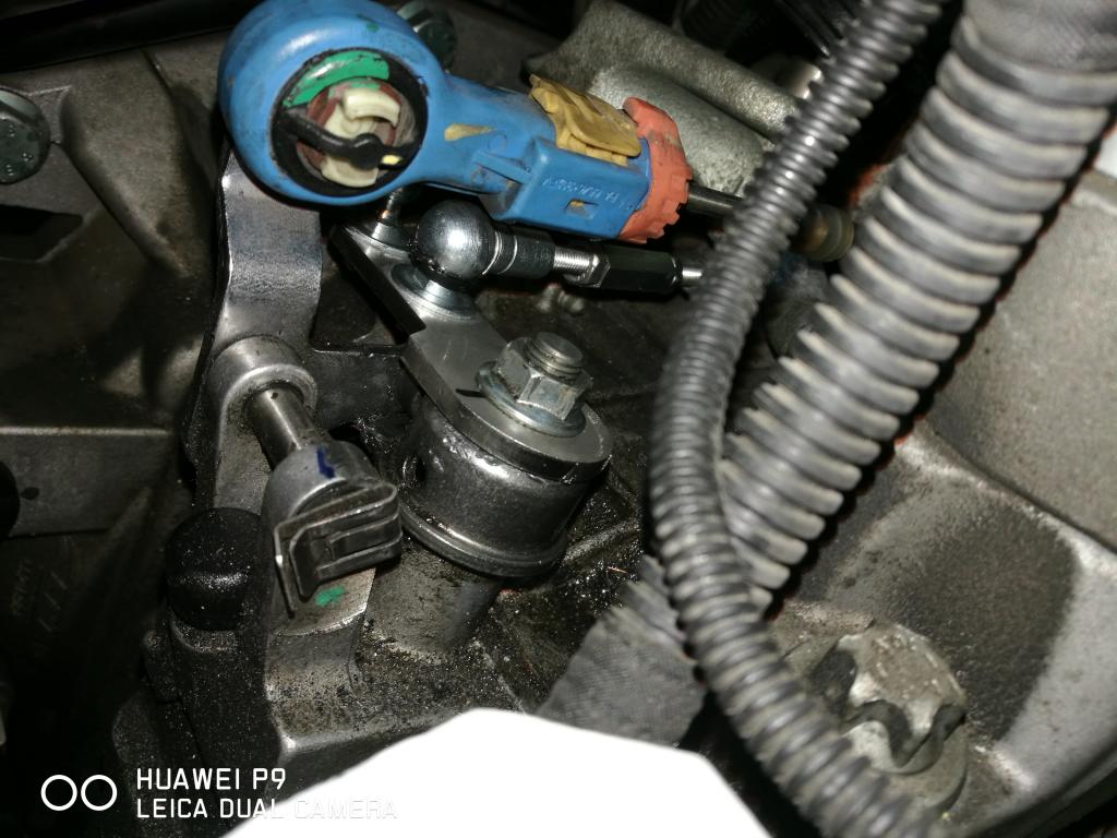 6) Po zdjęciu oryginalnej dźwigienki dobrze jest oczyścić sworzeń na którym siedziała i delikatnie przesmarować, a następnie przenieść znak markerem ze starej blaszki nałożyć dźwigienkę short shiftera patrząc aby złożyć dokładnie tak jak znaki markera i przykręcić nakrętkę trzymającą.