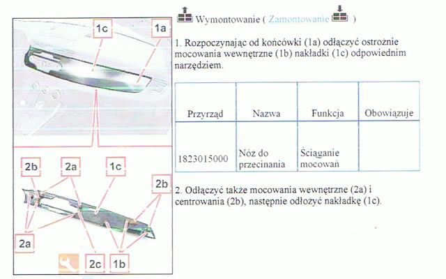Właśnie tak jak na obrazku. Zdejmuje się dość sprawnie ten panel. Nic nie połamałem. A radio to 4 śróbki i już. Nie wiem jak w innych panelach ale u mnie jest z zewnątrz aluminiowy i jest na tyle sztywny że nie ma problemu z oderwaniem zaczepów. Robiłem wg obrazka instruktażowego. Ale trzeba odwagi albo 4 browców