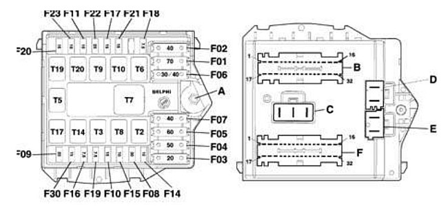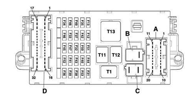 Umiejscowienie: 40 przewodowe złącze zlokalizowane poniżej skrzynki z bezpiecznikami