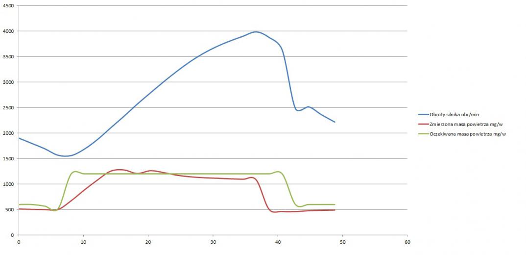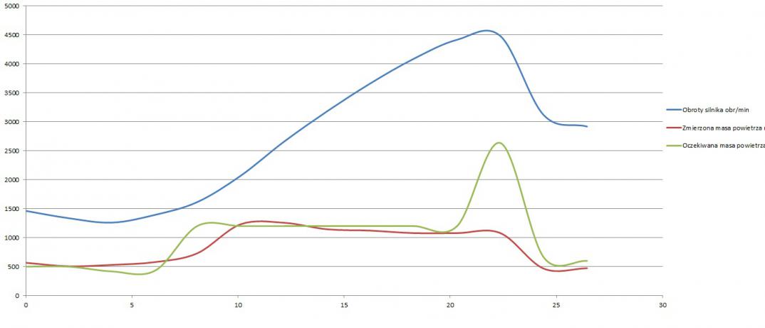 Co zauważyłem, są dziwne anomalie jeżeli chodzi o ilość powietrza, szczególnie na 3 biegu w okolicy 2000obr jest go za dużo, a z kolei w tym samym momencie jest niedoladowanie ze strony turbo. Dodatkowo w wyższych zakresach obrotów, wg przepływki tego powietrza jest za mało. Jednym słowem, OCB?
