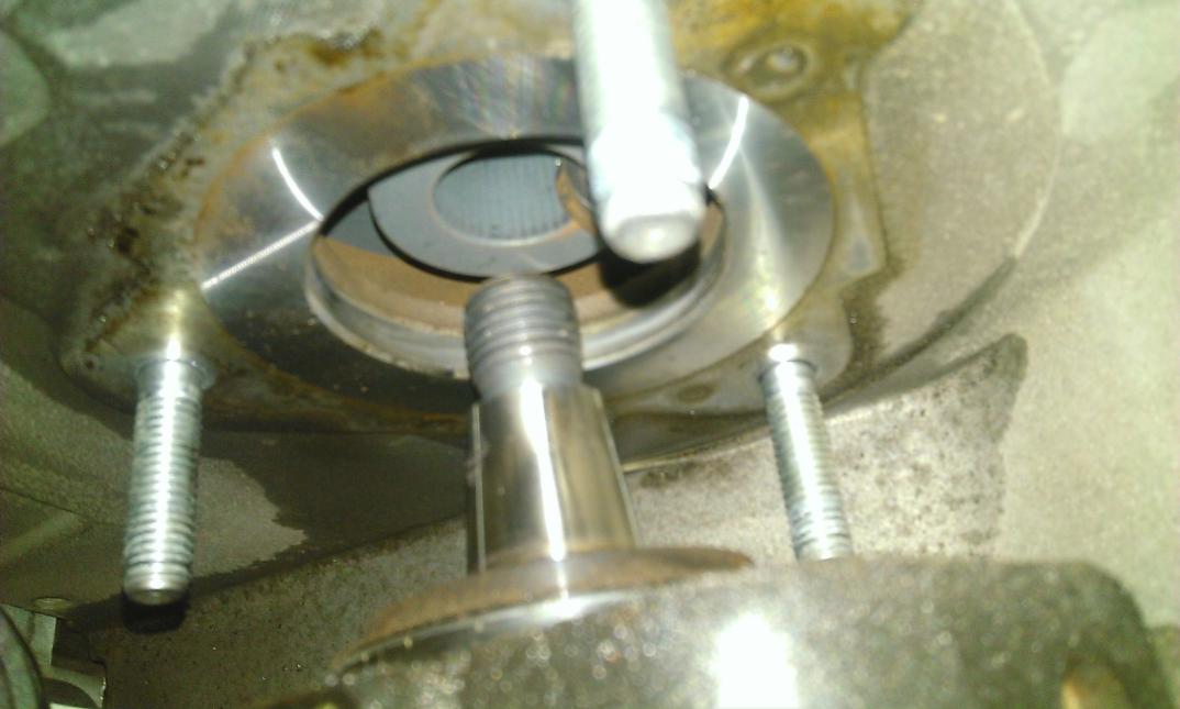 Po odkreceniu zakładamy taki o to sciągacz też na śruby na 10 klucz przykręconych do symetrycznych otworów z gwintem w kole.