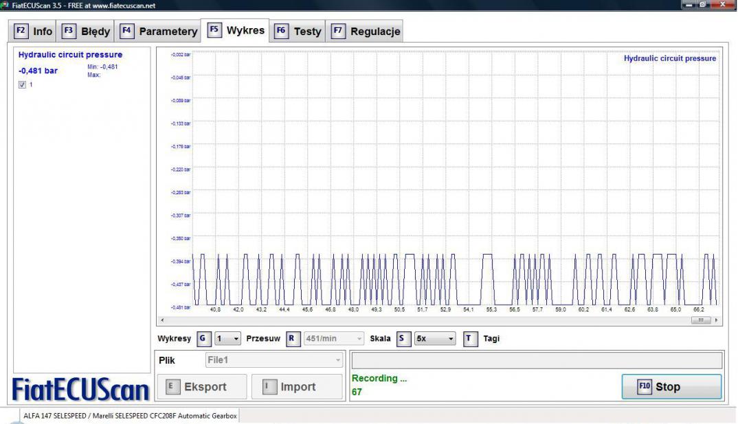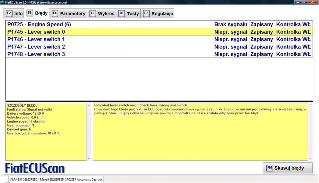 Od jakiegoś czasu mam problem z przekładnią selespeed na postoju wypadł mi bieg i od tej pory skrzynia nie reaguję komp nie pokazuję błędu. Kupiłem kabel żeby go podpiąć pod kompa i mam sprzęgło do małej regulacji to wiem na pewno. Załączam print screem z danymi z kompa. Czy możecie mnie naprowadzić co jest nie tak wiem że pompa nie daję ciśnienia i czujnik od temp oleju mi chyba wysiadł. Ale może osoby bardziej obeznane w temacie mi pomogą?Załącznik 120640Załącznik 120641Załącznik 120642:)