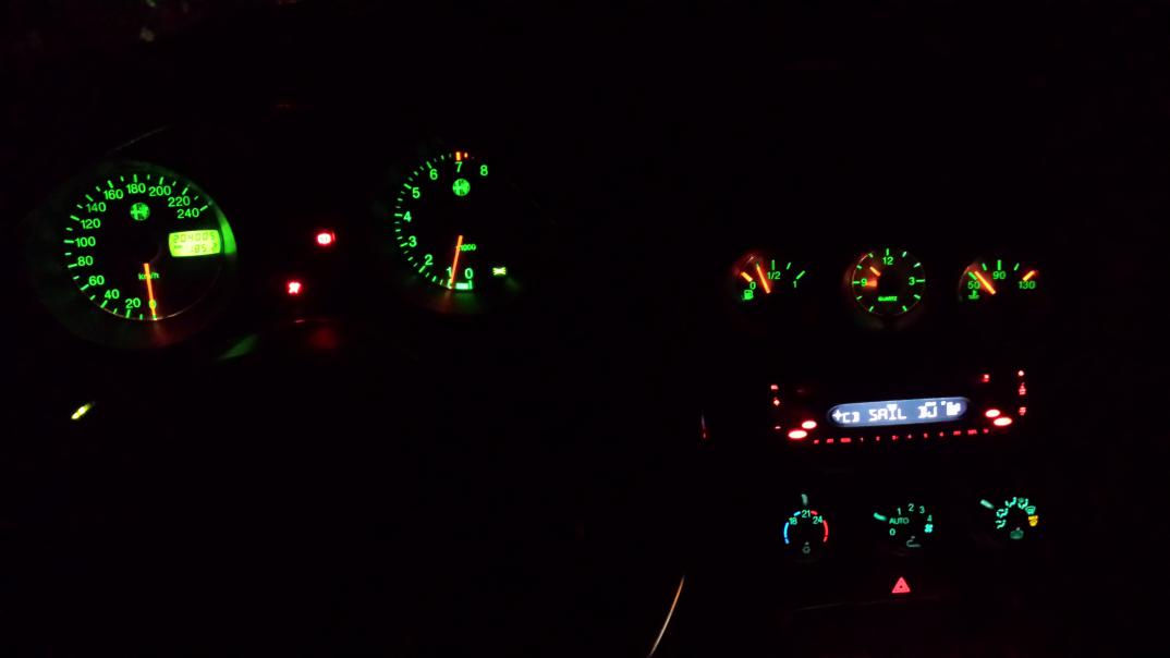 Jakaś godzina a jak zna się temat 30 minut, od razu odradzam montaż ledów zamiast żarówek, kolor podświetlenia jest brzydki i wskazówki nie świecą na ładny czerwony kolor tylko ledwo widoczny blady. Wygląda to źle. Jak masz jeszcze jakieś pytania, to śmiało nie dalej jak 2 tygodnie temu rozłożyłem cały środek bo żarówki zrobiły akcje "znicz" :)