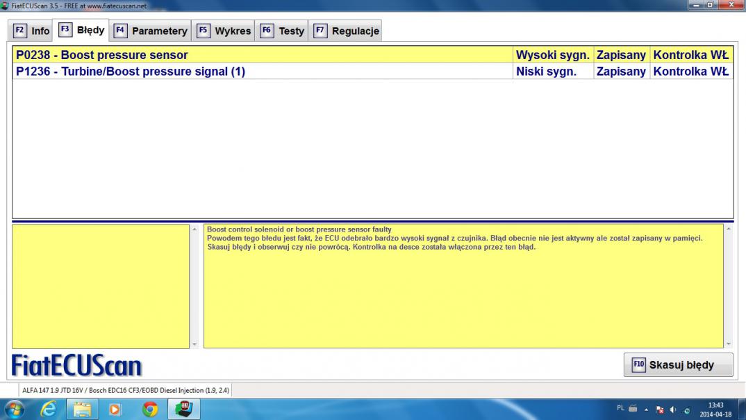 Drugi problem to blad ktory jest widoczny na pierwszym screenie. Dodam, ze dzisj rowniez przeczyscilismy EGR oraz kolektor ssacy (Dziwie sie, ze to w ogole chodzilo, masakrczynie zaklejone kanaly)