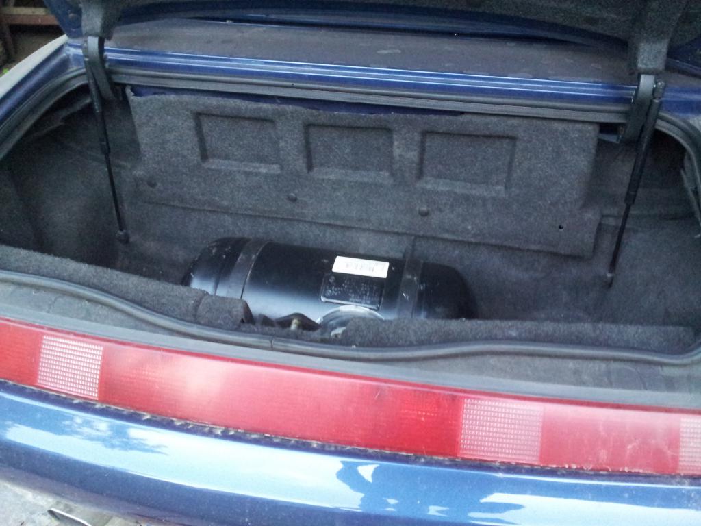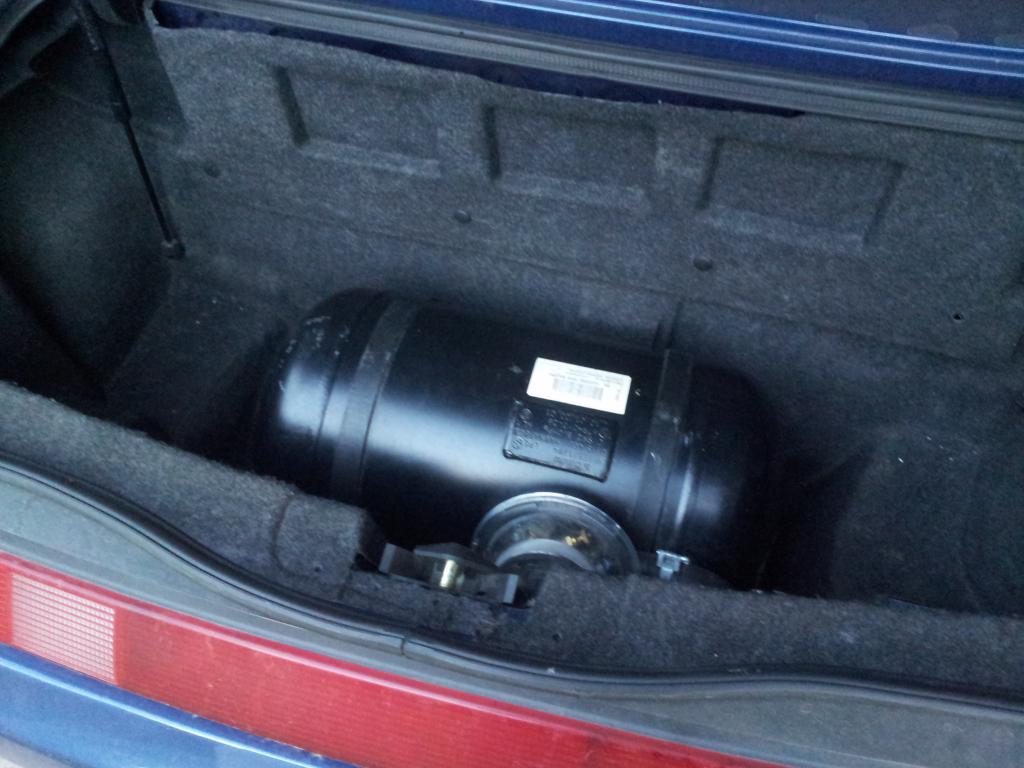 Dziś przymierzyłem butlę 50l Fi 270 jak planowałem. Wielozawór do tyłu i można dostać się ręką. Aku przerzuciłem na półkę do bagażnika. Butla mogła by być dłuższa. Reszta bez zmian jedyni osłonkę głośnika usunąłem.