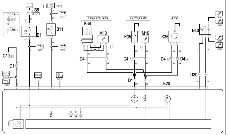 Pisze w sprawie wskaźników środkowych (poziomu paliwa, zegarka, temp wody) a mianowicie ich podłączeniu. Posiadają gniazdo na 12pinów, tylko nie mam pojęcia który pin od czego. Jeśli ktoś mógłby mi rozpisać co i gdzie powinno być podłączone to będę wdzięczny. Zaznaczam że nie mam pojęcia o elektryce samochodowej i proszę mnie nie odsyłać do literatury ze schematami bo się na tym nie znam. Siedzę już trzeci dzień i nie mogę sobie poradzić. Dołączam schemat może się przyda.http://www.forum.alfaholicy.org/atta...d=156030&stc=1