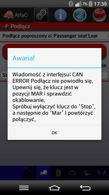 AlfaOBD połączony ale błąd przy próbie wejścia w silnik abs i resztę. Jakiś pomysl?