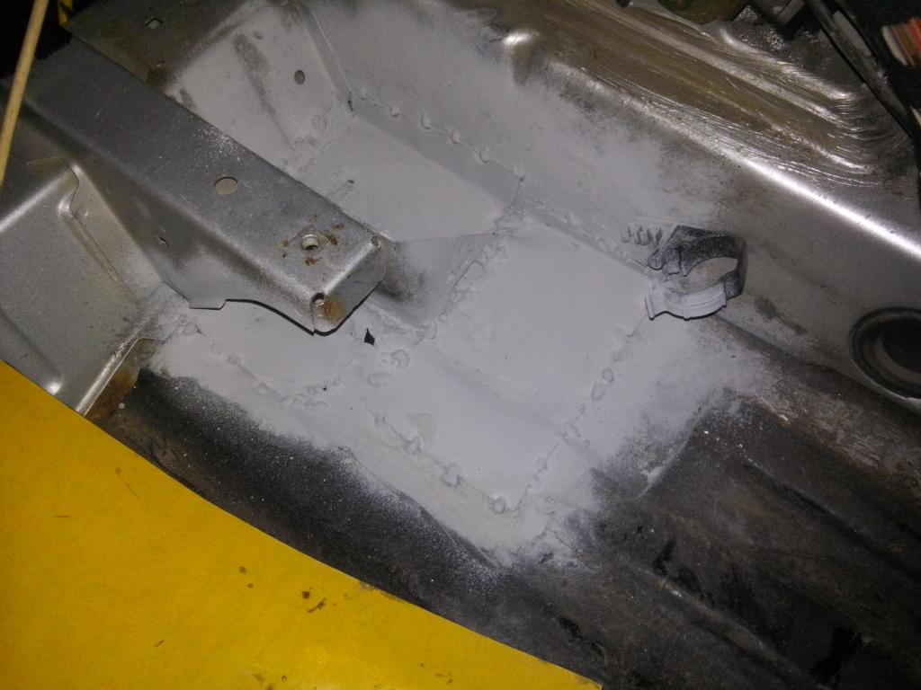 dzis wziolem sie za podloge od spodu i tez masakra,pod orginalna konserwacja rdza i dziury musialem troche powycinac