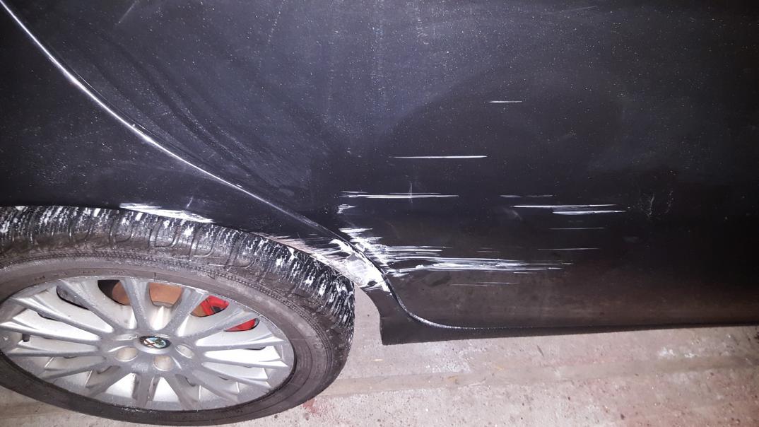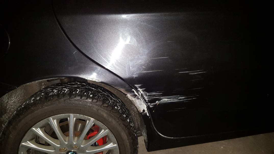 Rezultat? mocno uszkodzone nadkole (zerwane zeń co tylko zerwać się dało oraz porysowane tylne drzwi z lekkim (na szczęście bardzo lekkim) wgnieceniem od strony pasażera...