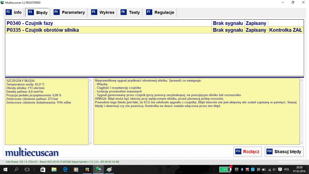 dziś jadąc krótki odcinek szarpnęło dojeżdżając do domu stanąłem chwile na parkingu i auto samo zgasło więc poszedłem po komputer i podłączyłem i oto te dwa błędy po wykasowaniu ich i włączeniu i wyłączeniu zapłonu kilkukrotnie auto nie chciało zapalić. Po odczekaniu 10 minut samochód zapalił bez żadnego błędu. Dodam że auto kupiłem w Polsce od handlarza i zauważyłem że na wiązce od komputera pod jest naklejka "WIAZKA POZYTYWNA"
