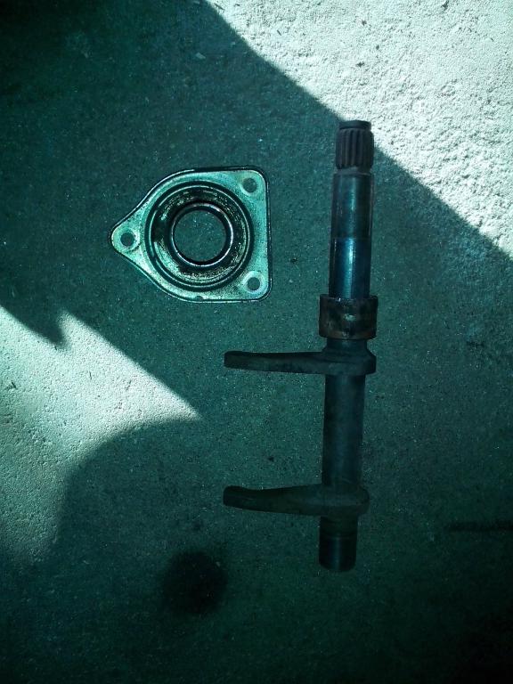 Myślałem, że już mogę tylko poczekać na sprzęgło i spokojnie spać :victory:, jednak dziś zauważyłem, że jest jeszcze jeden problem z którym chyba będzie ciężko się uporać. Mianowicie, chodzi o dolną tuleje która "trzyma" widełki. Zauwazyłem że jest ona od dołu wyłamana i boje się, że widełki będą zbyt nisko. Zaznaczyłem to na poniższym obrazku, może macie jakies rady jak to zrobić żeby było dobrze?
