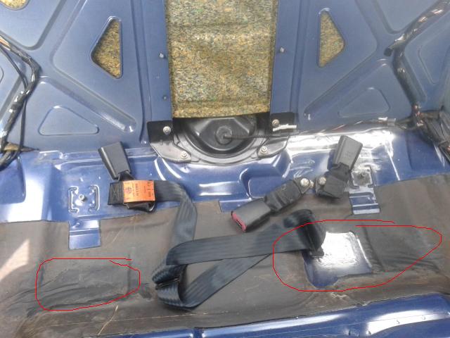 Nie mam pojęcia jak to jest, że kiedy samochód stoi i pada, to deszcz trafia do środka, rozumiem jakbym jechał... ale jak stoi? Przypominam, że lałem szlaufem po dachu po uszczelkach i nic nie leci do środka. Woda po zdjęciu kanapy stoi zwykle w tych miejscach:
