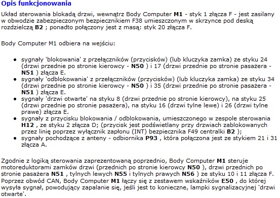 Witam szanowne koleżanki i kolegów. Mam problem z zamykaniem z pilota centralnego zamka. Zaczęło się od tego, że przestał działać przycisk otwarcia bagażnika w panelu deski rozdzielczej ale ponieważ otwierał się z pilota, zbagatelizowałem to. Oczywiście, kiedy bagażnik był pełny po zakupach, przestało działać otwieranie bagażnika z pilota. Masakra! Do czego zmierzam, oczywiście baterię w pilocie wymieniłem na nową, nie działa nic, pomimo "mrugającej" diody. Dokładnie, to po wyjęciu baterii i włożeniu na nowo, czasami zdarza się, że zaskoczy - ale raz, albo dwa i koniec. Mam tylko jeden kluczyk .Miałem już z tym pilotem "przeboje" wcześniej - raz działał z 5-u metrów, drugim razem z 30 cm, wymieniłem już obudowę, dalej to samo - więc poszedłem na łatwiznę i kupiłem uniwersalną centralkę sterowaną pilotem , tylko nie wiem gdzie się wpiąć. Wiem, że sygnał do siłowników zamka wysyła body komputer i wiem, że ten temat był już poruszany - przeczytałem wszystko - znalazłem nawet post, gdzie wszystkie złącza body kompa z AF 147 były opisane - tyle, że jam mam body kompa jak na fotkach - jakiś inny niż normalnie w 147. Ja po prostu mam takie szczęście. Prośba więc ogromna, może ktoś z was napisze, które styki w jakim złączu odpowiadają za sterowanie centralnym zamkiem w drzwiach i bagażniku z tego kompa z fotek (zdjęcie znalazłem w necie ale mój komp wygląda dokładnie tak samo). dzięki z góry za pomoc!