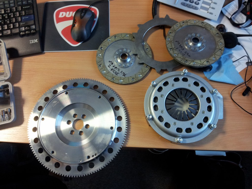 Zakupilem kolo jednomasowe z Fiata Coupe 20V i bedziemy rzezbic....Jednak powstal szalony pomysl (w subaru na porządku dziennym) aby zmienic typ sprzegla na pchane...U nas jest bardzo lichutki docisk z takimi 3 wypusteczkami , ktory ciagnie to nasze sprzegielko...i dlatego sie piernicza juz przy 400nm nie mowiac juz o 500+