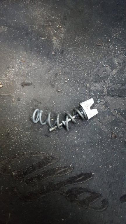Zakładasz nową sprężynkę w środek wkładasz ten bolec z białym motylkiem w tą część która pozostała przy pedale sprzęgła. Ten motylek zapierasz w zaznaczonym miejscu na grodzi za pedałem sprzęgła.
