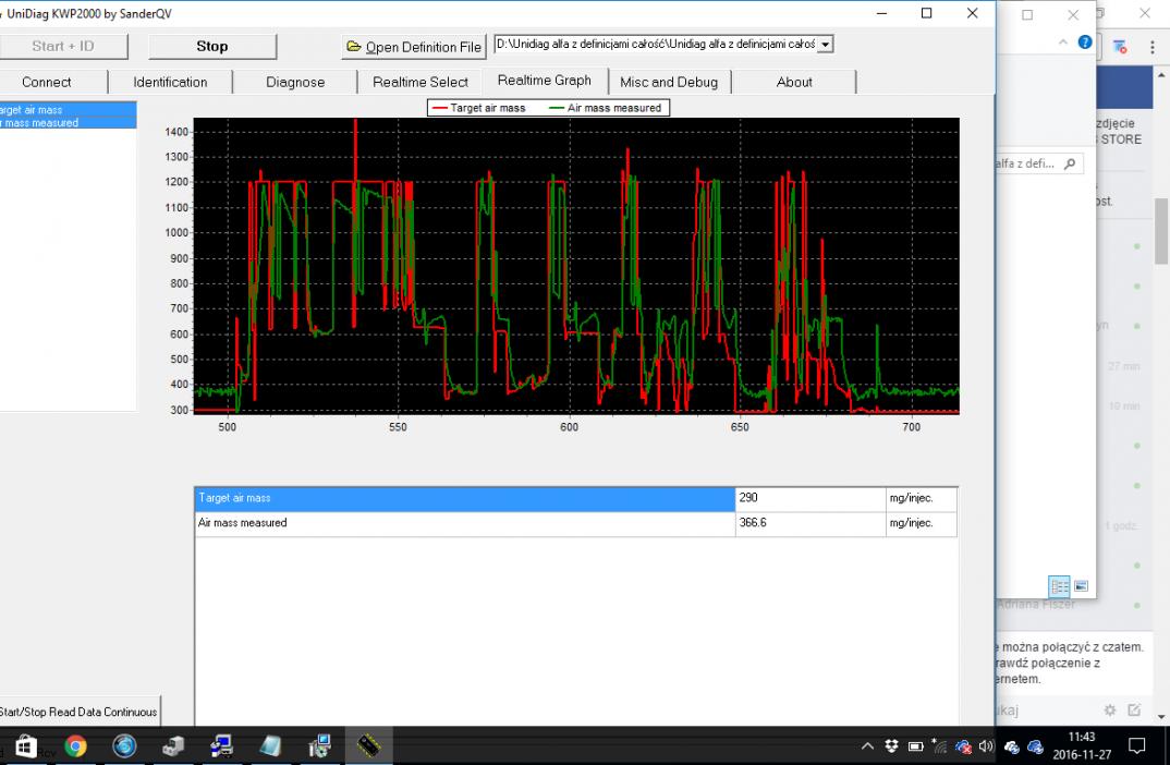 Diesel pressure measured podąża za Diesel target pressure jednak Air mass measured jest większe niż Target mass air.