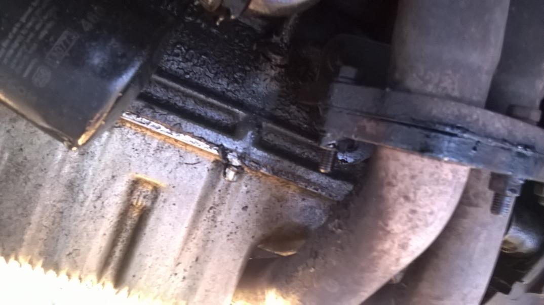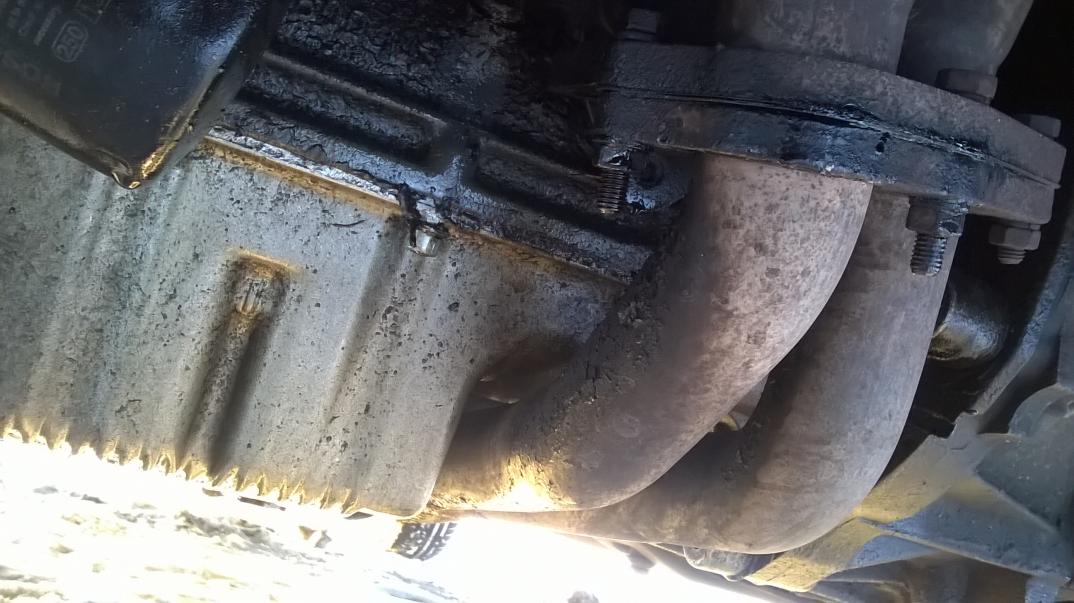 ps. dmucha i wyrzuca zamarzniętą "substancę" z odmy skierowanej pod samochód (tej którą skrzynia powinna pobierać powietrze z dolotu...). Ta rzadsza plama to właśnie spod rurki odmy. Jak wchodziłem kropelki w niej były zamarznięte aż po zgięciu mocniej wydobywający się z niej dym (przedmuch) wyrzucał fragmenciki wielkości płytek małych paznokci. I tak, ta spalenizna na rurze wydechowej, tam też cieknie i jest czarno.