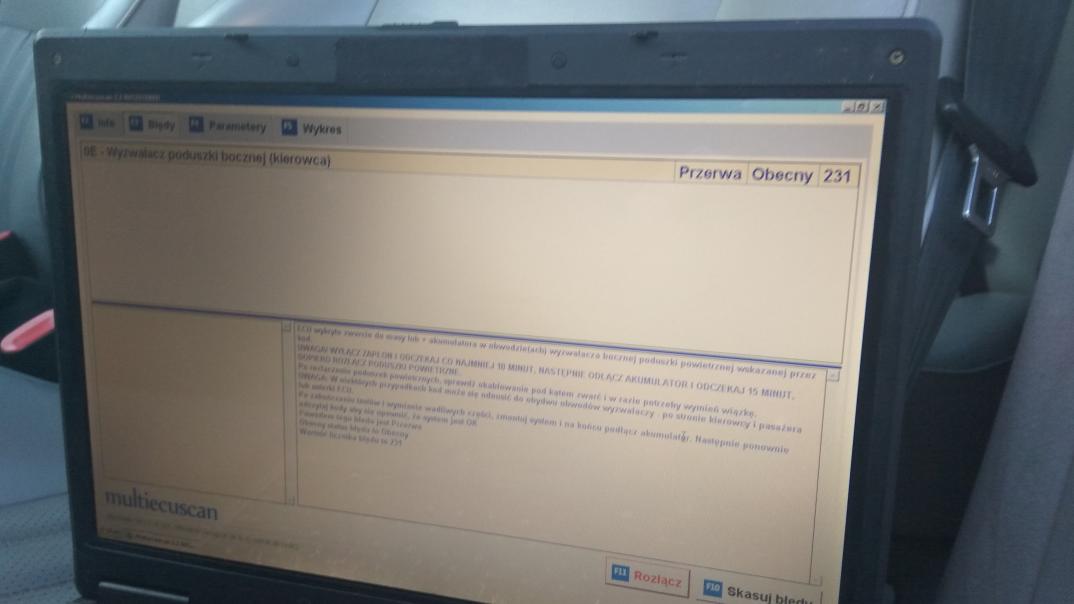 Dzisiaj wziąłem się za naprawę wiązki klapy i wszystko byłoby fajnie, gdyby nie to, że po naprawie wywaliło mi błąd poduszki ;|. Podpiąłem pod Mes'a i błąd to wyzwalacz poduszki bocznej ( kierowca) - tak jak na zdjęciu ... Najgorsze jest to, że nie daje się wykasować, co sugeruje, że błąd jest aktywny (?) Już raz mi się tak zdarzyło,stosunkowo niedawno, były jakieś 2 błędy poduszki, ale udało się je wykasować ... Jakieś pomysły, gdzie szukać problemu ? Załącznik 220769