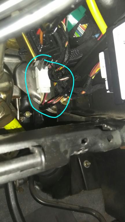 znalazłem jakąś kostkę mniej więcej pod dźwignią do regulacji kierownicy, ale wydaje mi się, że to nie ta