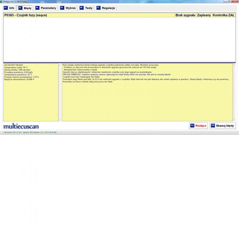 Muszę sprawdzić rezystancje i jakość styków, bo wywaliło mi w sumie 2 błędy, pierwsze P0365, po wykasowaniu i przejażdżce P0170.