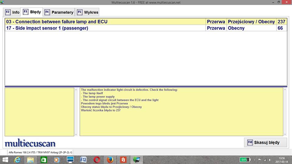Po podpięciu alfy do kompa wyświetliło 6 błędów z poduszkami, widocznie na screenie, po skasowaniu 4 udało się usunąć, ale zostały dwa ze zdjęcia. Na internecie i w wyszukiwarce nie bardzo mogę znaleźć odpowiedź. Gdzie szukać przyczyny?