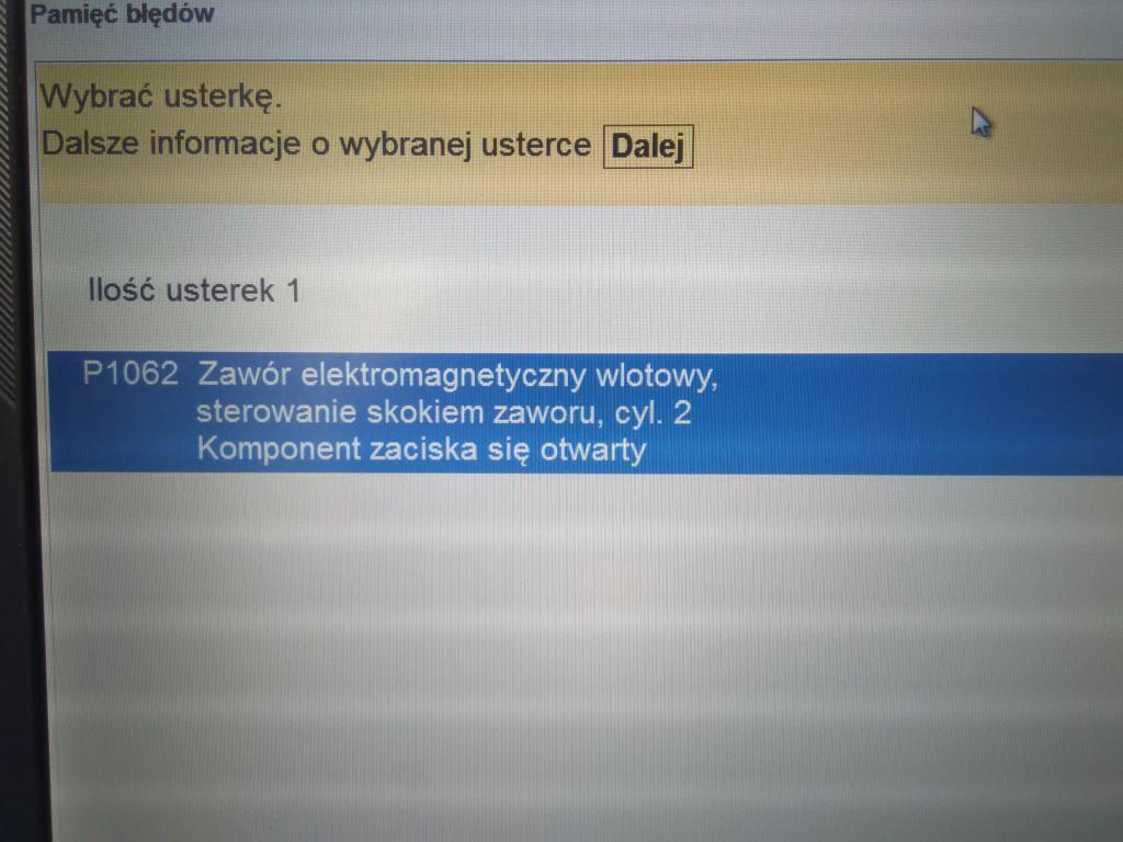 1.4 TB 170KM - Kod bledu P1062 po wymianie oleju
