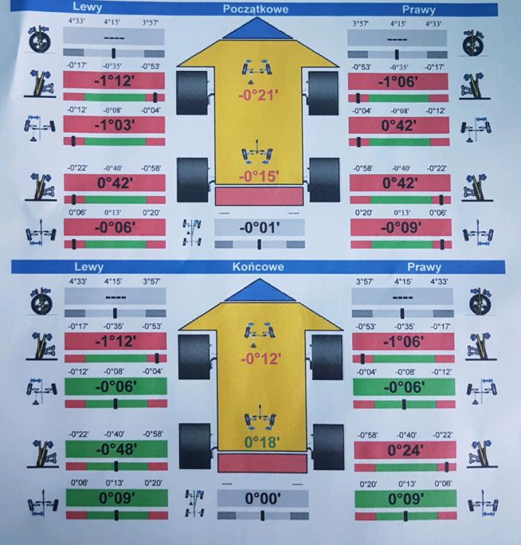 Nie podobają mi się kąty nachylenia kół przednich, ale podobno tam nie ma regulacji...