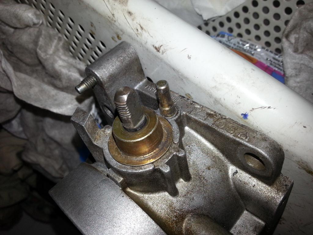 Poszukiwania lewego powietrza zawiodły mnie do przepustnicy. Precyzując, do prawej strony wałka przepustnicy - tam gdzie znajduje się sprężynka. Podczas rozbierania doszedłem do etapu widocznego na zdjęciach. I dalej nie wiem jak to rozebrać, nie mam też pewności czy są tam jakiekolwiek uszczelki bądź uszczelniacze metalowo-gumowe.