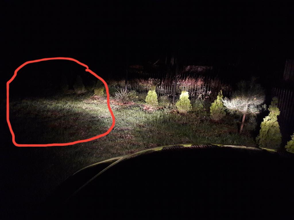 Wymieniłem wczoraj wszystkie żarówki z przodu w Alfie na niby mocniejsze osramy i pojawił mi się taki efekt "dziury" po lewej stronie (nie oświetlonej części). Chodzi o światła mijania. Przed wymianą tego nie było. Raczej świeciły bardziej równomiernie, a w zaznaczonym fragmencie świecą jakby mocniej. Dla lepszego zobrazowania dodaje zdjęcie