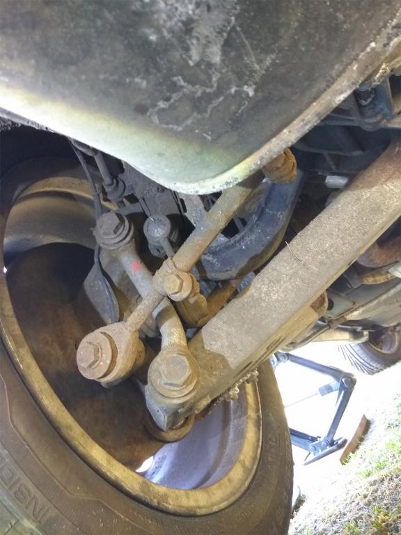 byłem na szarpakach, diagnosta nic nie stwierdził - jedynie potwierdził fakt że koła są zdecydowanie zbyt mocno pochylone, geometria siadła, bedzie mi zjadał opony (i tak nie jeżdze teraz do czasu aż to naprawie). jednak nie potrafił wskazać co jest przyczyną - wg niego trzeba rozebrać całośc i sprawdzać po kolei.