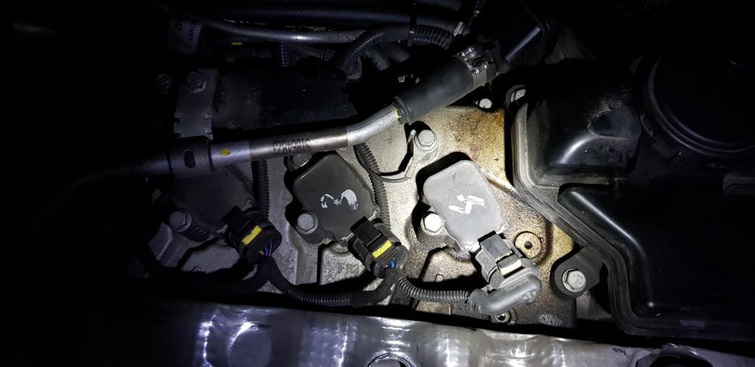 To mój pierwszy post na forum. Dwa dni temu spotkała mnie przykra sytuacja. Nie mogłem odpalić auta z wciśniętym sprzęgłem i hamulcem, żadnej reakcji. Po odpaleniu, silnik na biegu jałowym mocno trzęsie kabiną. Wyświetla się wykrzyknik w kółku, w miejscu strzałek do zmiany biegów, system Start&Stop jest nieaktywny Dodatkowo nie działa tempomat. Parę razy dziś samochód zgasł podczas jazdy w mieście. Nie świeci się żadna kontrolka oprócz wspomnianego wykrzyknika i komunikatu o systemie Start&Stop. Zdjąłem pokrywę silnika i zauważyłem coś takiego. Silnik podczas pracy drga tak jakby chodził nie na wszystkich cylindrach. Pomóżcie, kupować cewkę i świece nową i zrobić to samemu?? Sądzicie że to pomoże? Olej nie powinien tamtędy wyskoczyć raczej ?