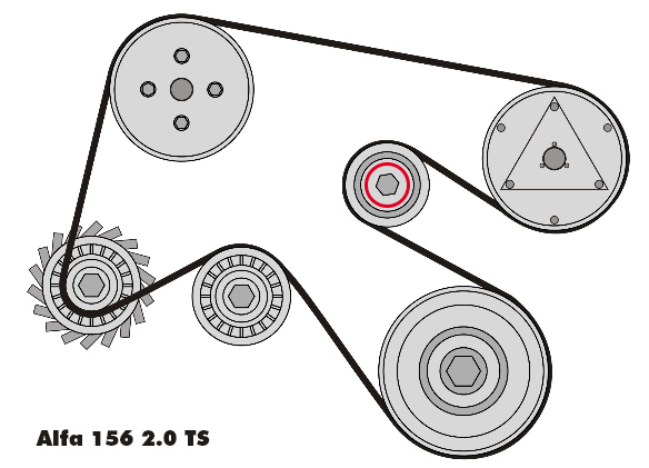 Witam, chciałbym wymienić rolkę prowadzącą paska klinowego w mojej Alfie 2.0 TS, ale nie wiem jaki gwint (prawy - lewy) ma śruba która ją trzyma. Nie chciałbym przekręcić gwintu. Układ paska mam jak w załączniku, wersja Alfy z klimatyzacją. śrubę w załączniku zaznaczyłem kolorem czerwonym. Załącznik 247707