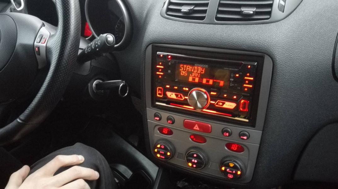 2Din Kenwood DPX-5000BT, wraz z adapterem bez problemu steruje przyciskami z kiery. Duży plus że mogę ustawić jaki chce kolor na radiu - wyszedł taki sam jak podświetlenie reszty.