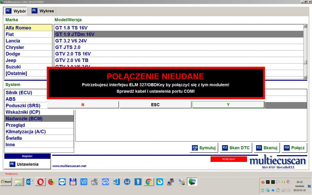 Posiadam takowy (zwykły czarny ELM327 na OBDII zakupiony za ok 30PLN) jednak nie chce się łączyć z moją Alfą.