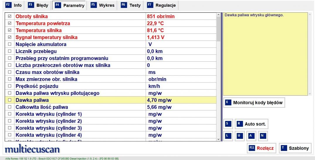 Podpoiłem się do Alfy Multiscanem i sterownik klimy widzi dziwną temperaturę silnika -13 stopni C, podczas gdy ECU widzi ponad 80 stopni C.