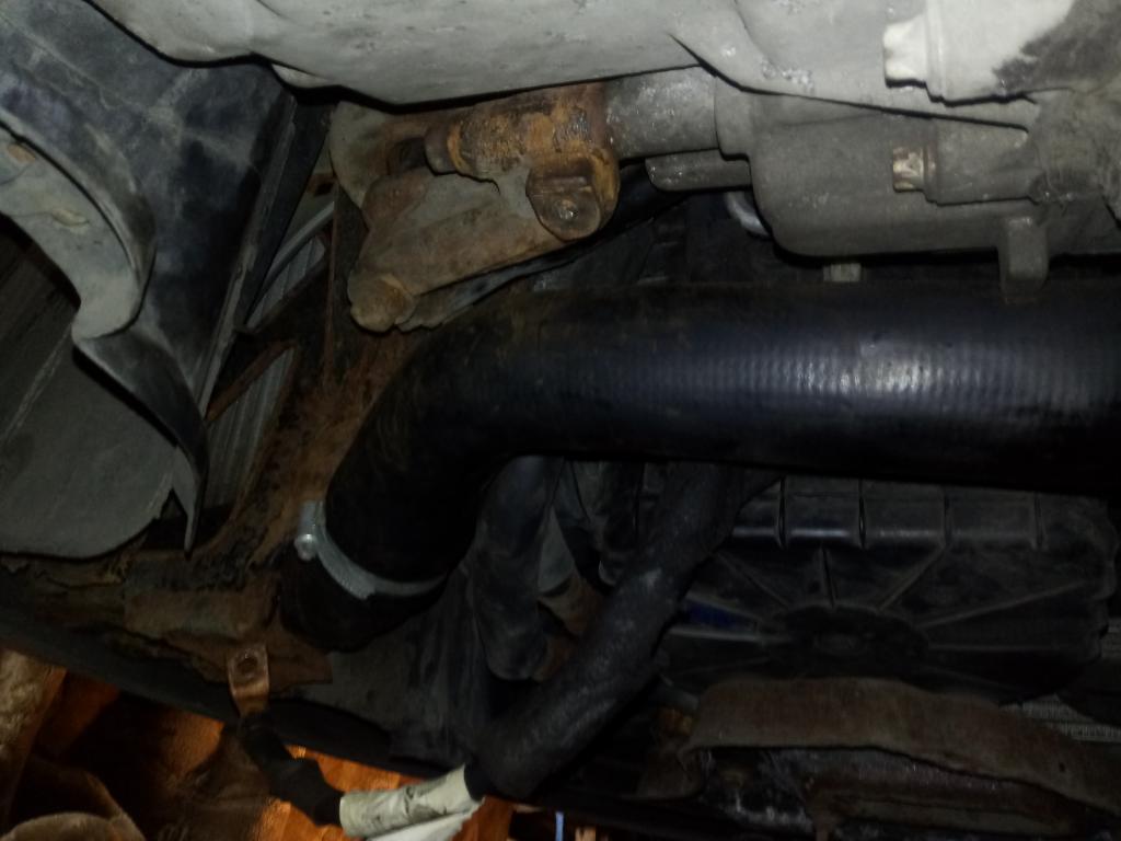 Masa musi być do silnika/skrzynii doprowadzona. Generalnie tam gdzie było to przykręcone to nie jest to fabryczne miejsce. Szukaj szpilki mocującej skrzynie.