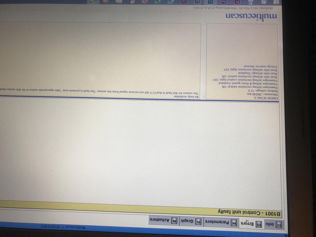 wczoraj po uruchomieniu samochodu zaświeciła się kontrolka airbag. Podpiąłem auto do kompa i wyrzuciło błąd B1001. Kasowanie go nie pomaga, system informuje, że błąd jest cały czas obecny. Przeczyściłem kontakt sprayem wszystkie wtyczki pod fotelami kierowcy i pasażera, niestety brak rezultatu. Nie pomogło też odpięcie na chwilę akumulatora.
